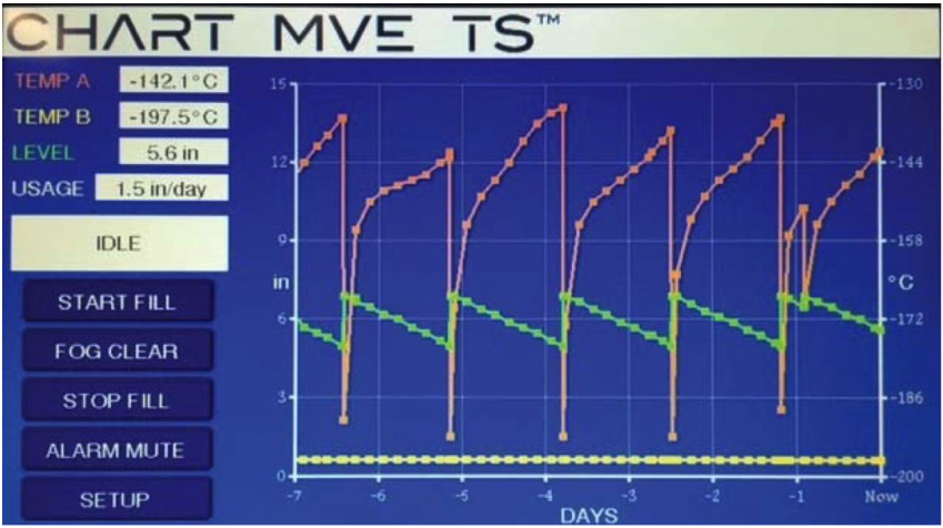 l 声光警报功能:低/高液位警报、低/高温警报、液氮添加时间警报、热气旁路警报、温度校准警报、低电量警报、电源故障警报、罐盖打开警报、设置时间超出预定范围警报